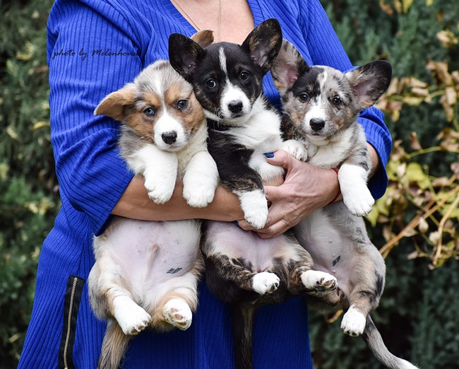 В моём питомнике рождаются щенки корги кардиган мраморного и триколорного окраса. Оба варианта — официально признанные стандартом породы и по-своему очаровательные.